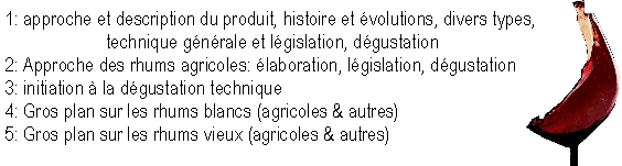Vous informer sur tout ce qui concerne le rhum (histoire, technique, législation et goûts) ainsi que vous initier à la dégustation des spiritueux, afin de reconnaître les fabrications et les goûts nobles, notamment les Rhums Agricoles.